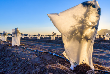 Immergrüne Pflanzen mit einem luftdurchlässigen Vlies einpacken, damit sie von der Wintersonne geschützt sind.