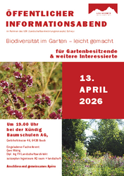 Am 13. April um 19.00 führen wir bei uns im Rahmen des LEK (Landschaftsentwicklungskonzepts) Schwyz einen kostenlosen Anlass zum Thema Biodiversität im Garten durch.
